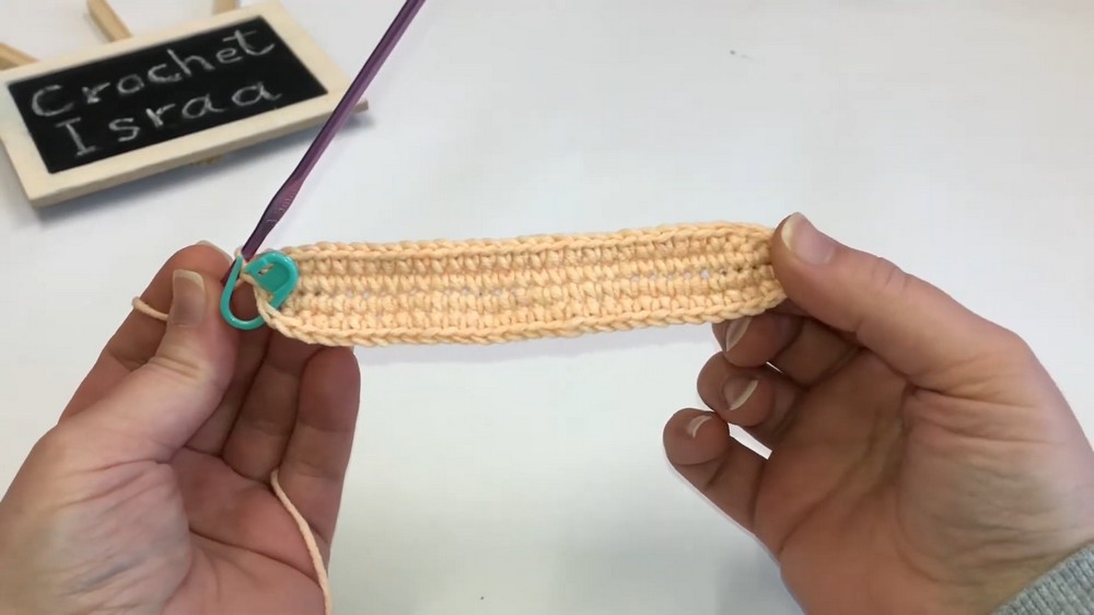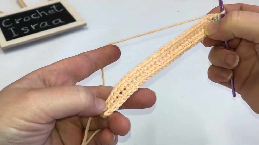 • Now, work along the opposite side of the chain, working 1 SC in each of the next 29 CH.