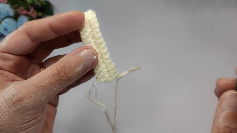 - Line 2: Chain 1, turn your work, and work SC stitches into the back loop only of each SC from the previous row. (Back-loop SC creates the ribbed texture).
