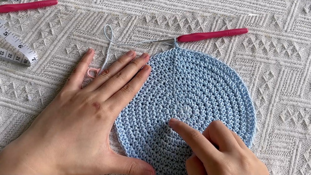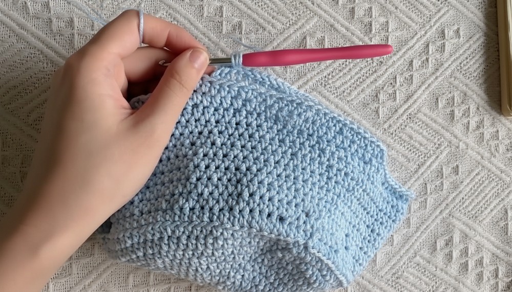- Crochet multiple rounds in HDC, no increases or decreases.