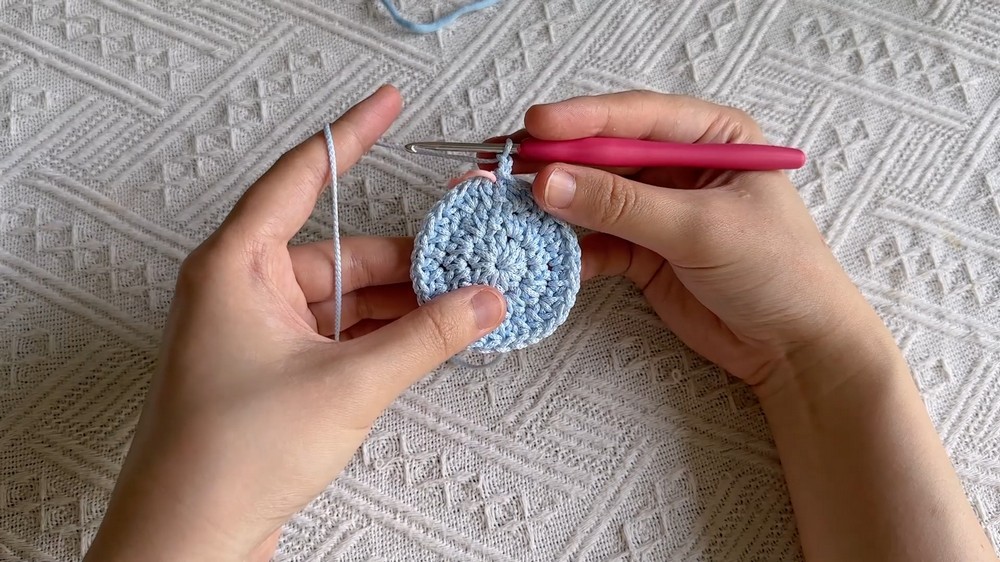 - Increase stitches by doubling each stitch: crochet 2 HDCs in each stitch (20 stitches total).
