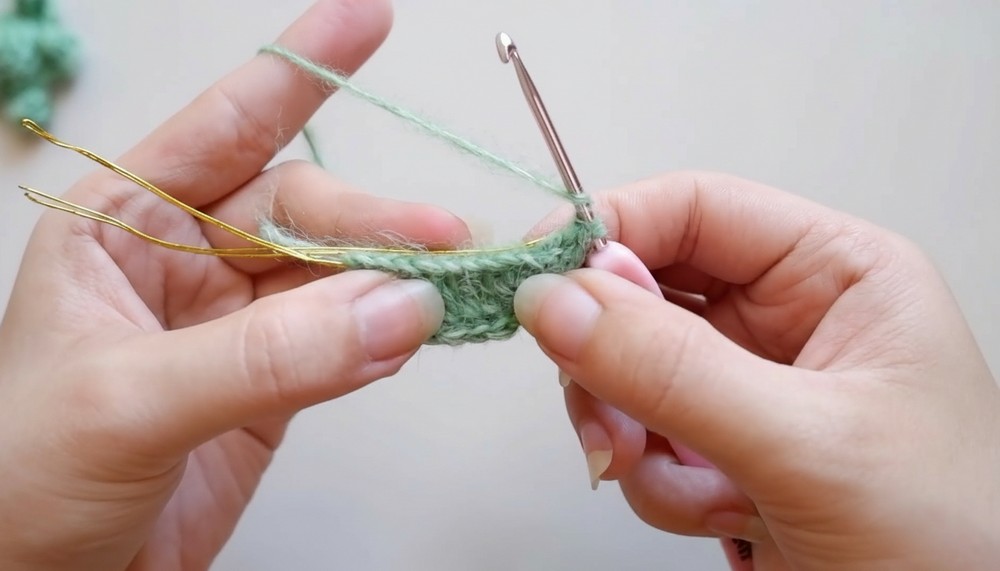 Fasten off with a tail for attaching flower petals.