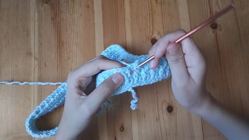 • Repeat these two rows until strap is your preferred width (4 stitches wide recommended; must be even number).