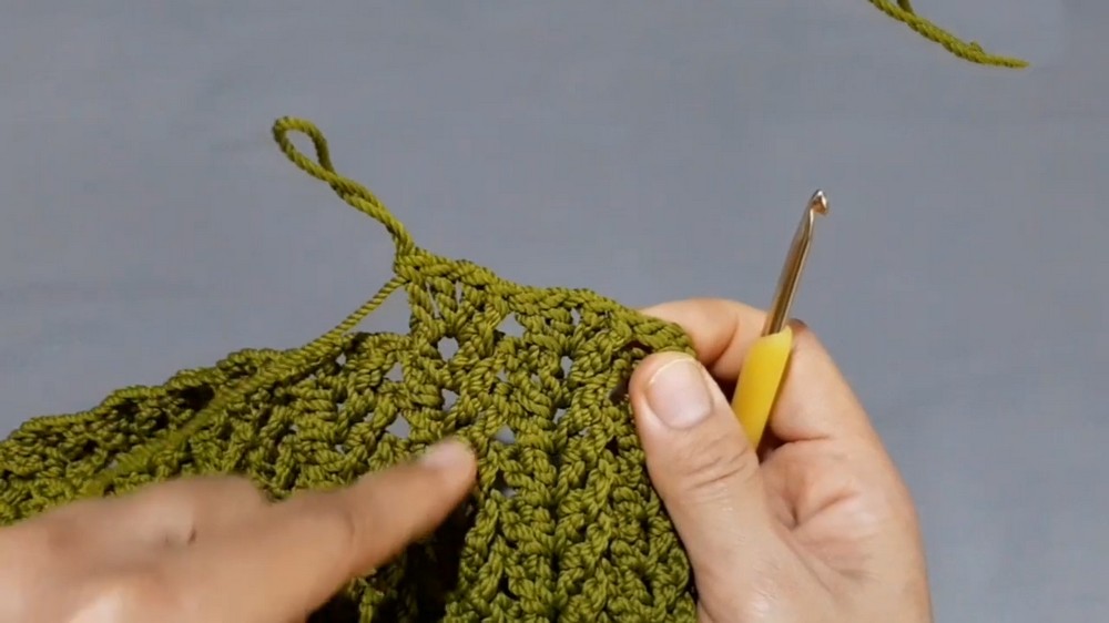 - Skip 2 stitches.