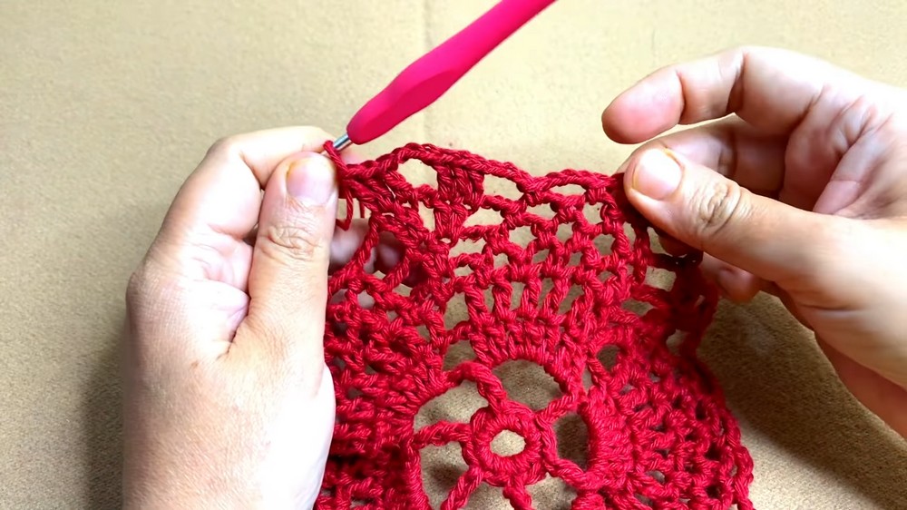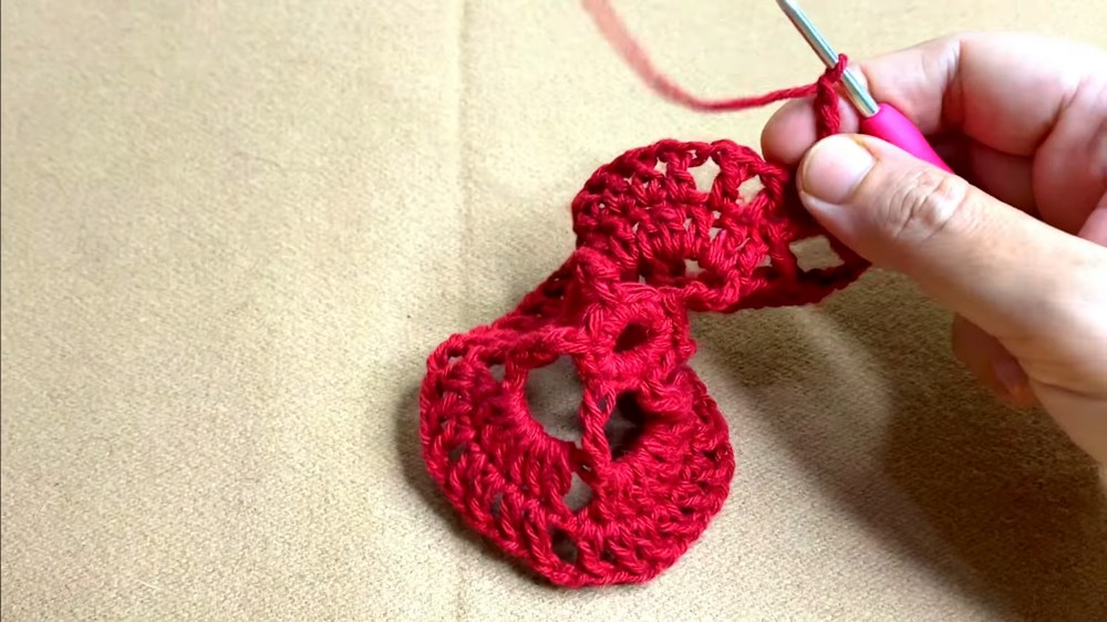 - Repeat the cluster-building process, steadily increasing chain spaces and double crochet groups.