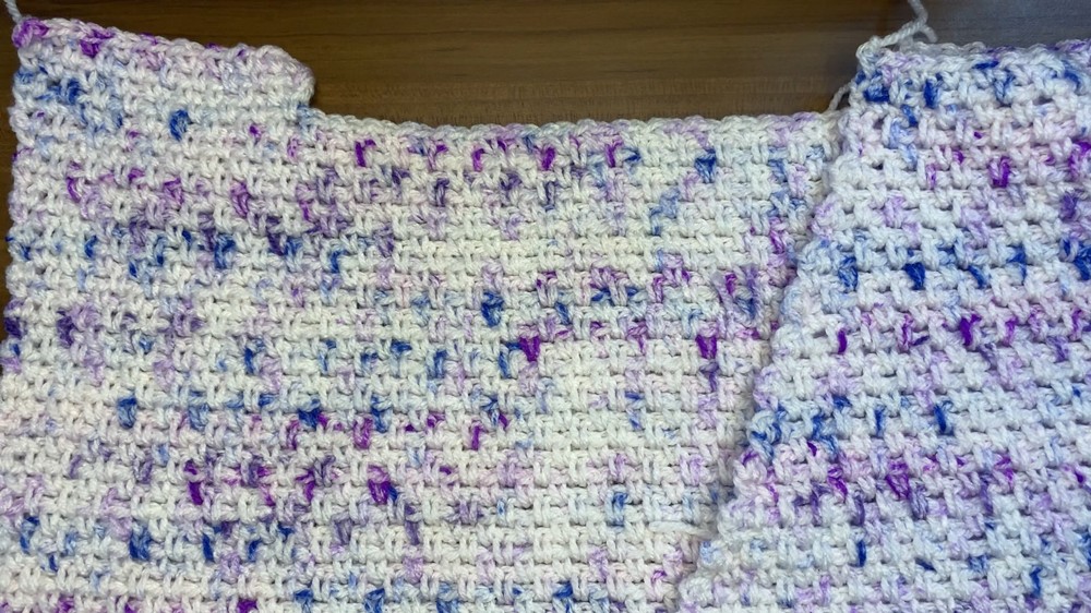 - For this tutorial, the back panel is knitted to a total height of 34 cm, while the front panels are 18 cm with decreases for the neckline.