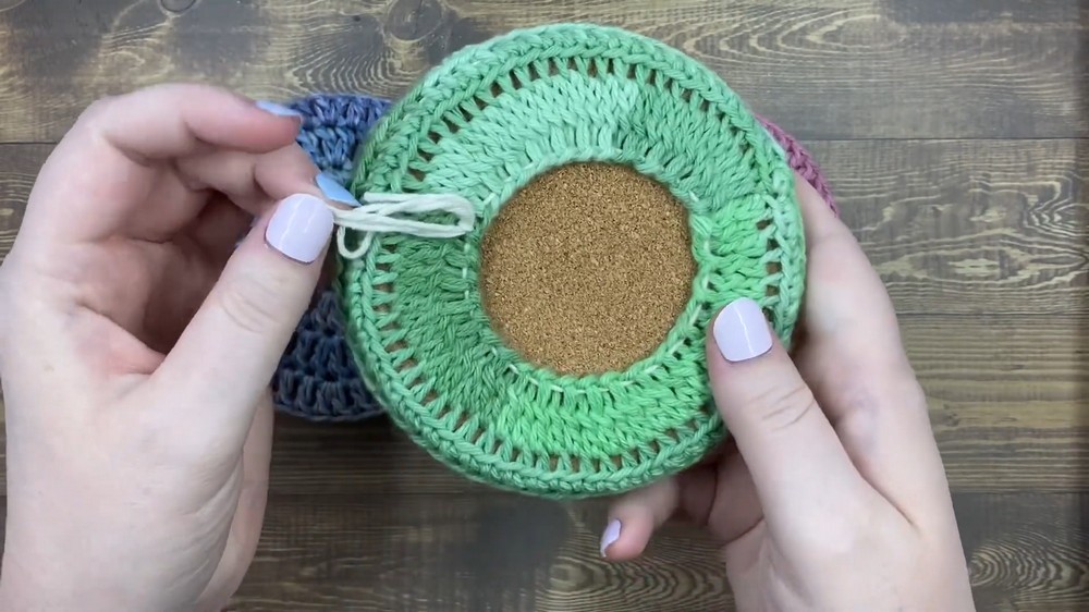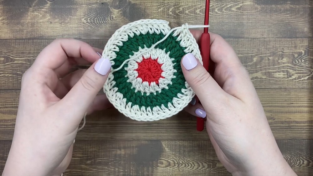 Introduce new colors each round by using standing double crochets for a polished transition, and keep the stitches tight by weaving in tails as you go. By round four, check that your work matches the diameter of the coaster—slight stretching is perfectly fine.