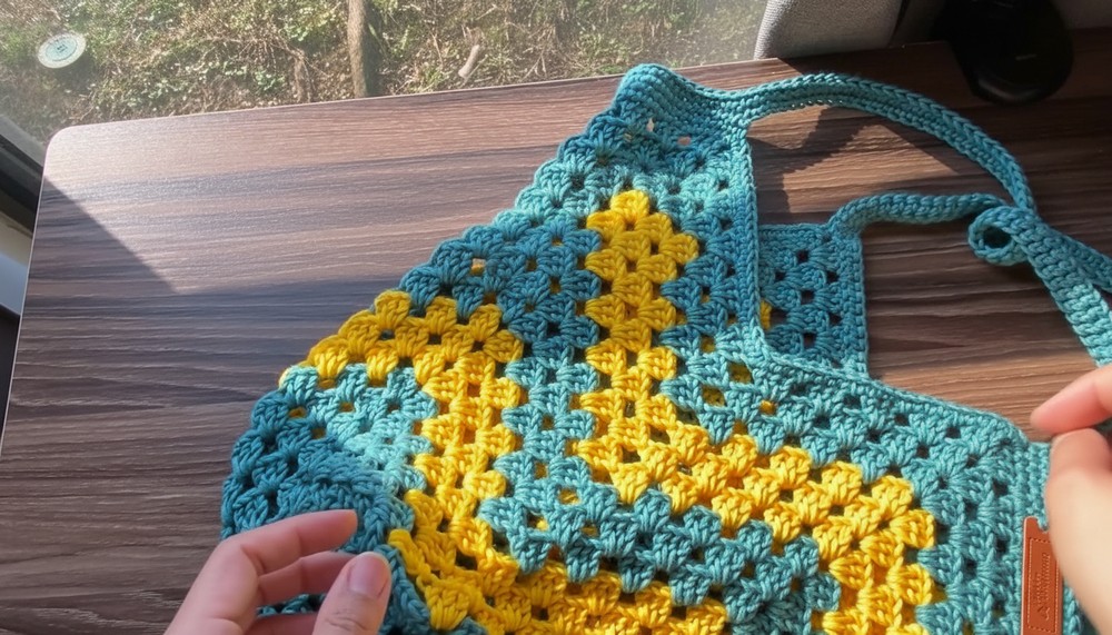 When changing colors, try to carry the yarn up the sides to minimize ends that need weaving in, or neatly knot and weave for a smooth finish. Blocking your bag after completion will help it retain its perfect square shape.