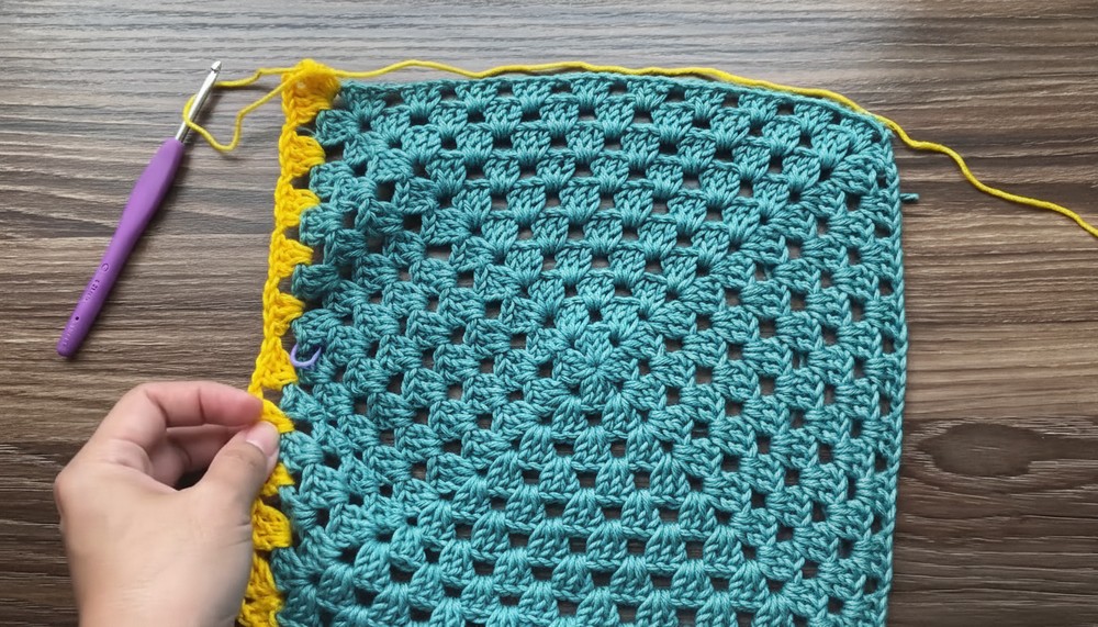 • Using your chosen yarn, crochet single crochet (sc) stitches evenly around the edges of the square base to start forming the bag’s sides.