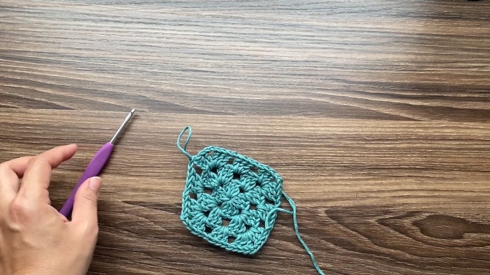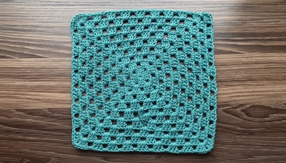 • Once your square has reached the desired size (after about 10 rounds), fasten off and weave in ends neatly.