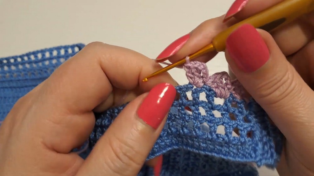 - Work dc starting from the third ch from the hook.