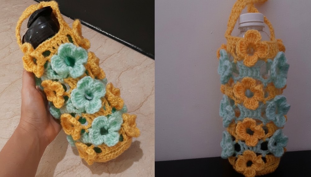 Crochet Bottle Holder Bag with Floral Motifs