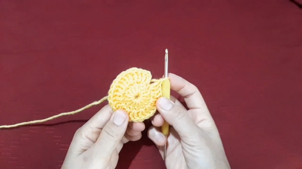 • Work pattern of double crochets and increases by alternating 2 dc in one stitch, 1 dc in the next for the whole round.