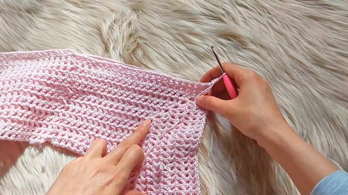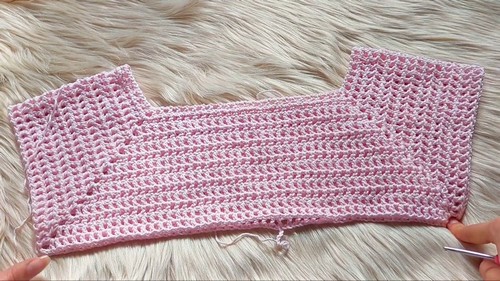 Most designs involve crocheting separate front and back panels in repeating rows.