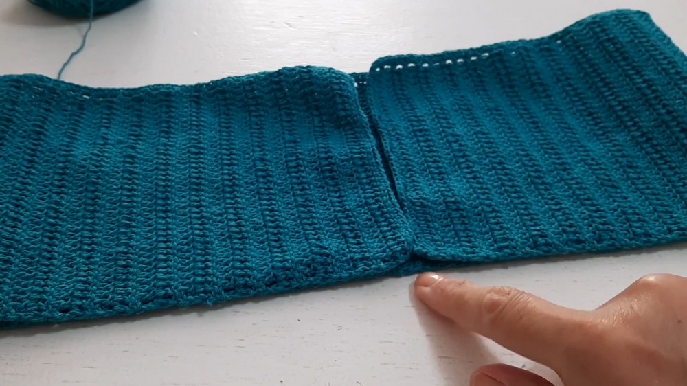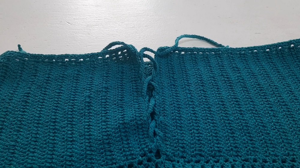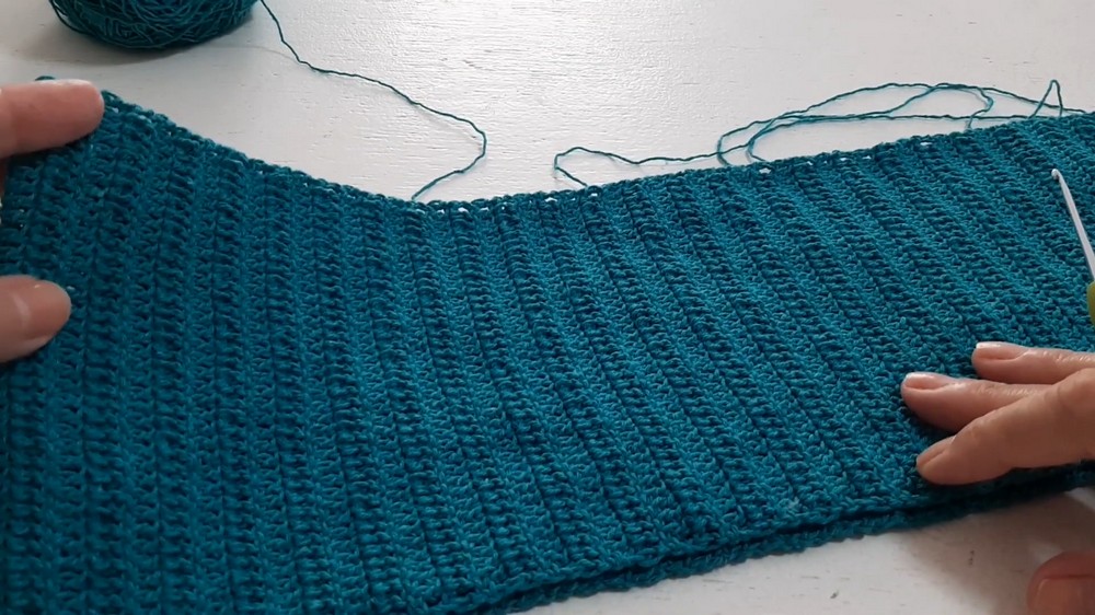 - Repeat these double crochet rows until the width matches your bust measurement comfortably.