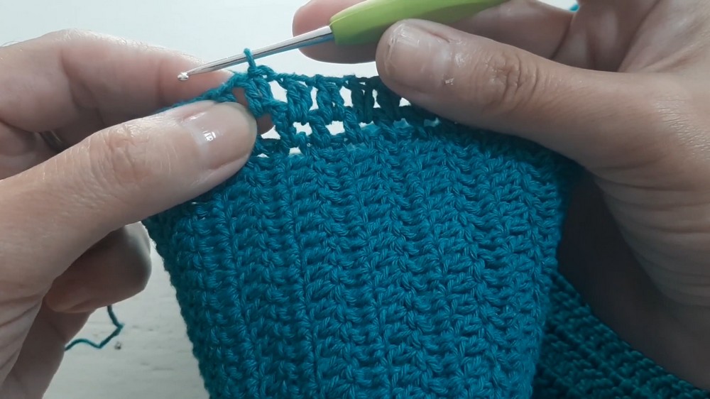 8. Continue with Rows of Single Crochet and Chain Mesh