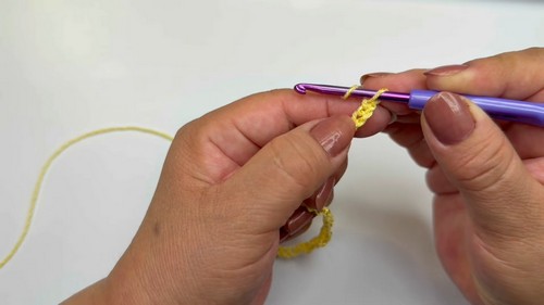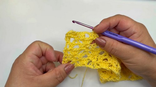 - For beginners: Measure your chain to ensure it corresponds to the desired width. Adjust length if needed while maintaining the stitch multiple (7 + 1).
