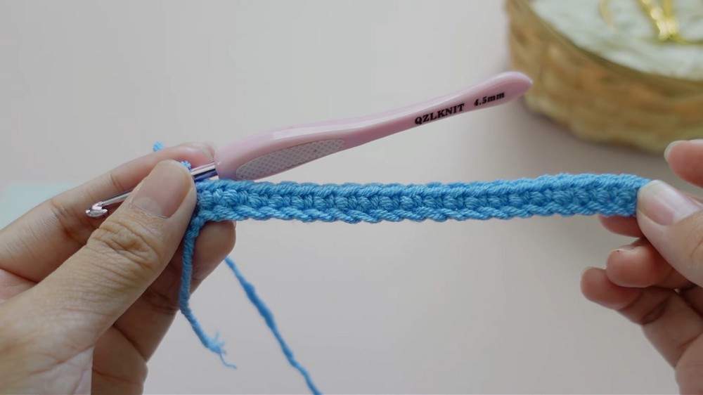 - Row 1: Chain 1, skip the first stitch, then sc in each stitch across (total 22 stitches).