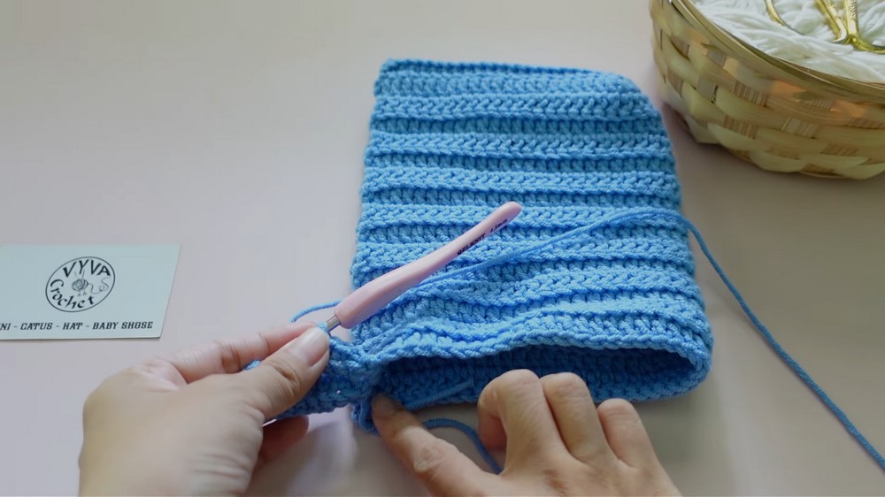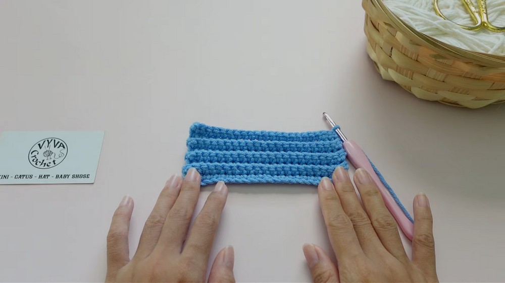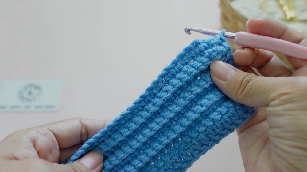 - Rows 2 to 8: Chain 1, turn. Work sc in the back loop only for every stitch across. Keep the stitch count constant at 22. Repeat this for rows 2 through 8.