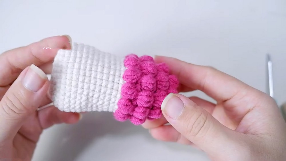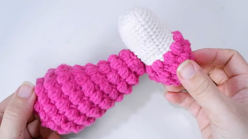 2. Crochet the woolly body part using bulky yarn and cluster stitches similar to corn cob for texture.