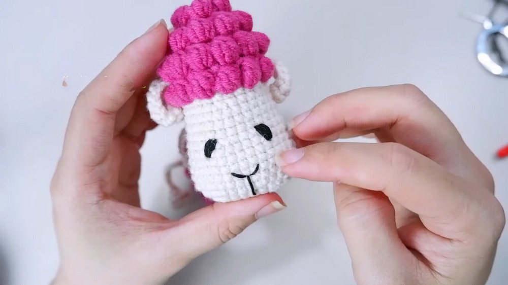 • Use contrasting yarn to embroider nose and eyelashes for a cute expression.