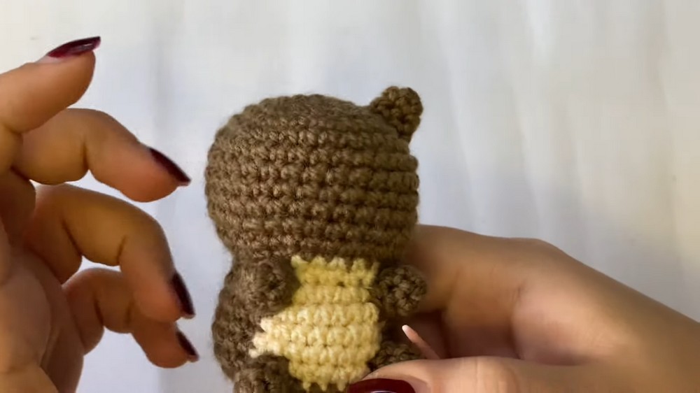 Materials: Light and dark brown yarn (or colors of your choice), safety eyes, fiberfill, 3.5mm hook, and a yarn needle.