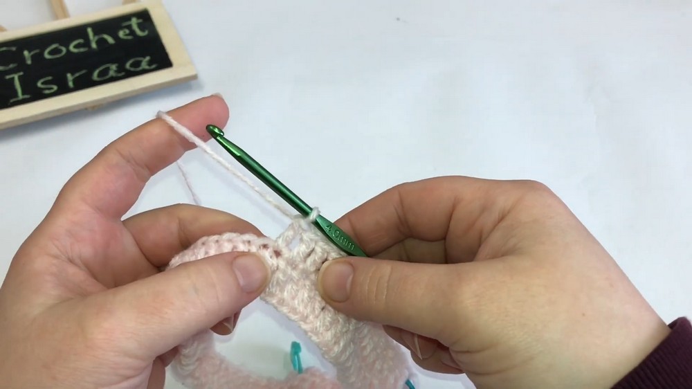 - Work 11 DC (or number corresponding to size) in the next stitches.