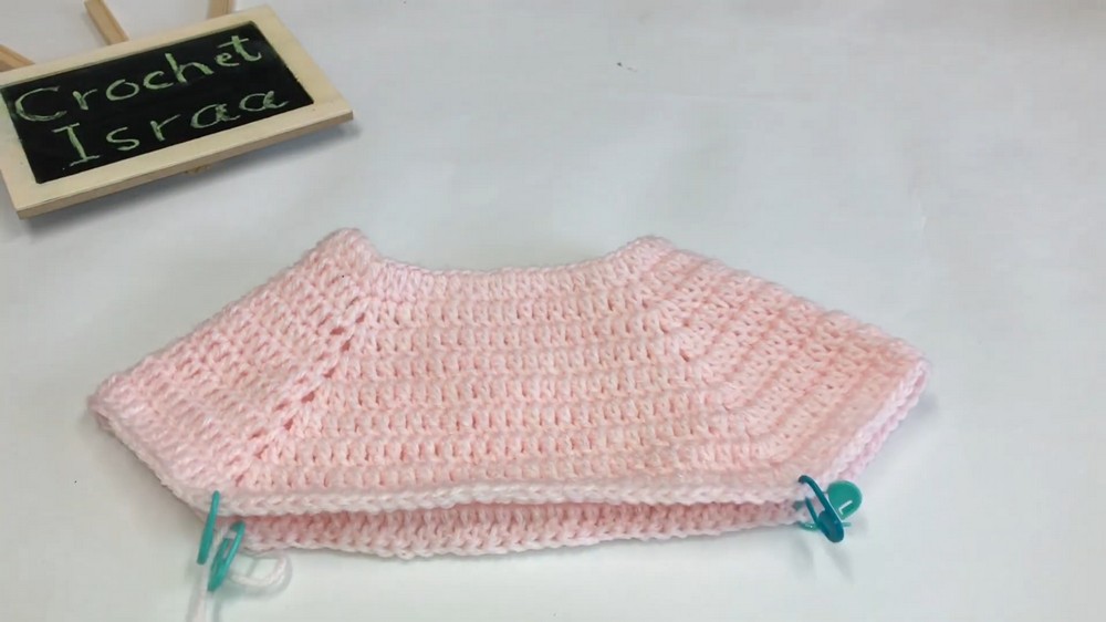- When you reach a marker, CH 2, skip all stitches between marked spaces (this creates armholes), and resume DC in the next marked stitch.