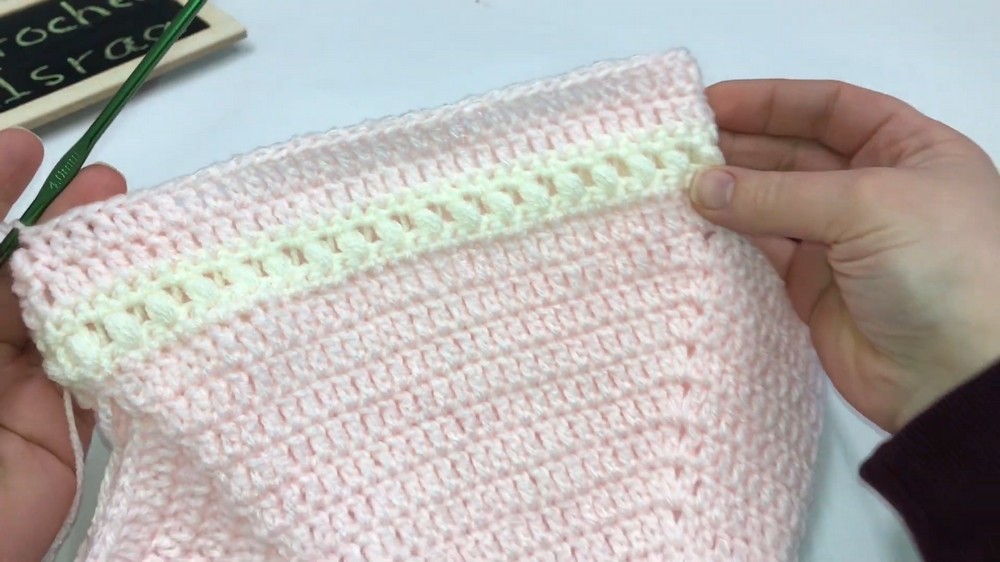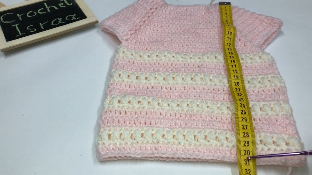- Alternate rounds of double crochet and Bean Stitch rows (Rounds 10–13) as needed until the pullover measures: