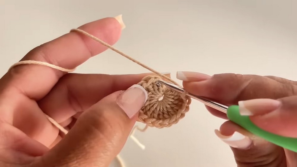 • Insert your hook into the next Dc from the previous round, and work 1 Sl st.