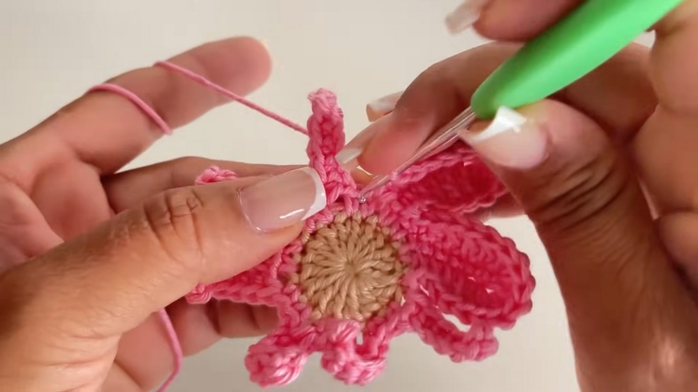 2. Petal Joining: When joining each petal to the center, make sure you Sl st directly into the next Dc of the flower center to keep the petals evenly spaced.