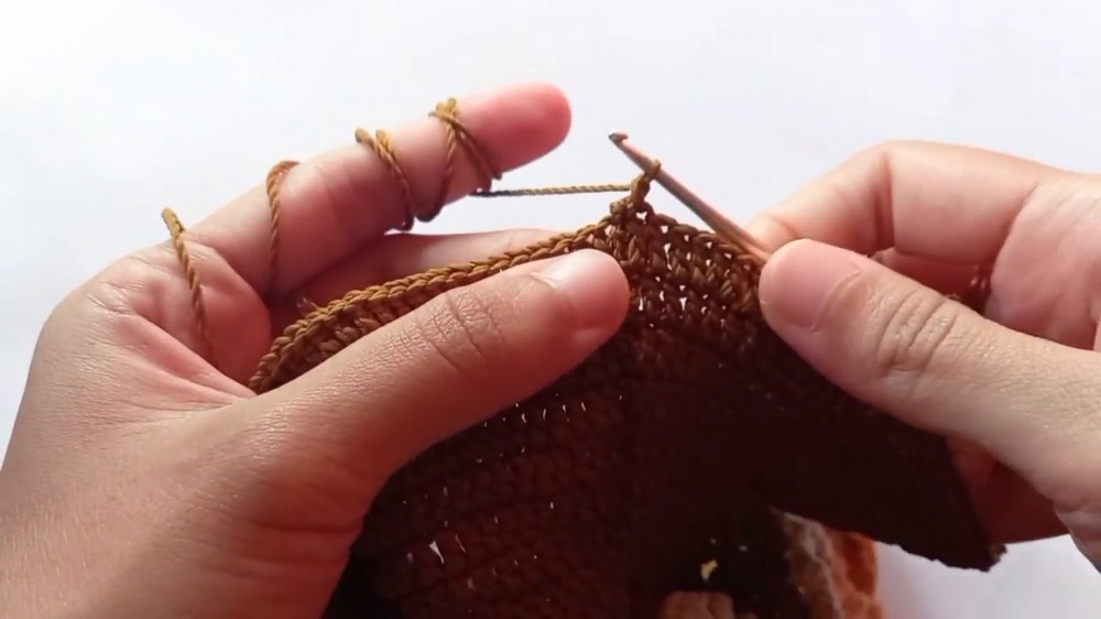 - Instead of crocheting forward to the left, stitch to the right (backwards).