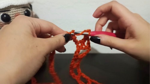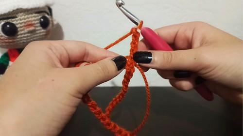 • (Ch 3, skip 3 ch, dc in next ch) 5 times (for the first side).