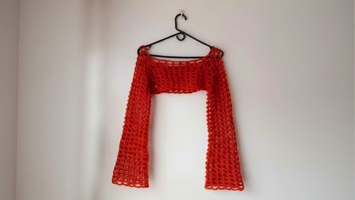 You have now created a pair of open mesh crochet sleeves—a modern and simple project using only basic chaining and double crochets. The technique is ideal for beginners mastering mesh patterns, and the design is easily adjustable by changing your foundation chain or number of rounds.