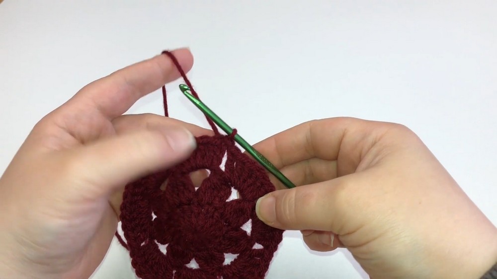 - Ch 4, then work Cluster Stitches in every 2 stitches around.