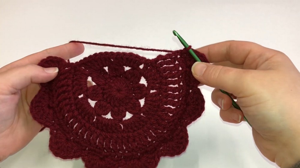 - Continue around the edge. Join with a sl st in the first stitch to close.