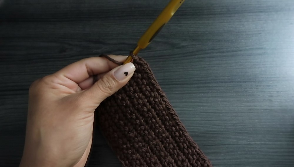 - Work 19 sc across, inserting hook into both loops of each stitch for consistency and durability.