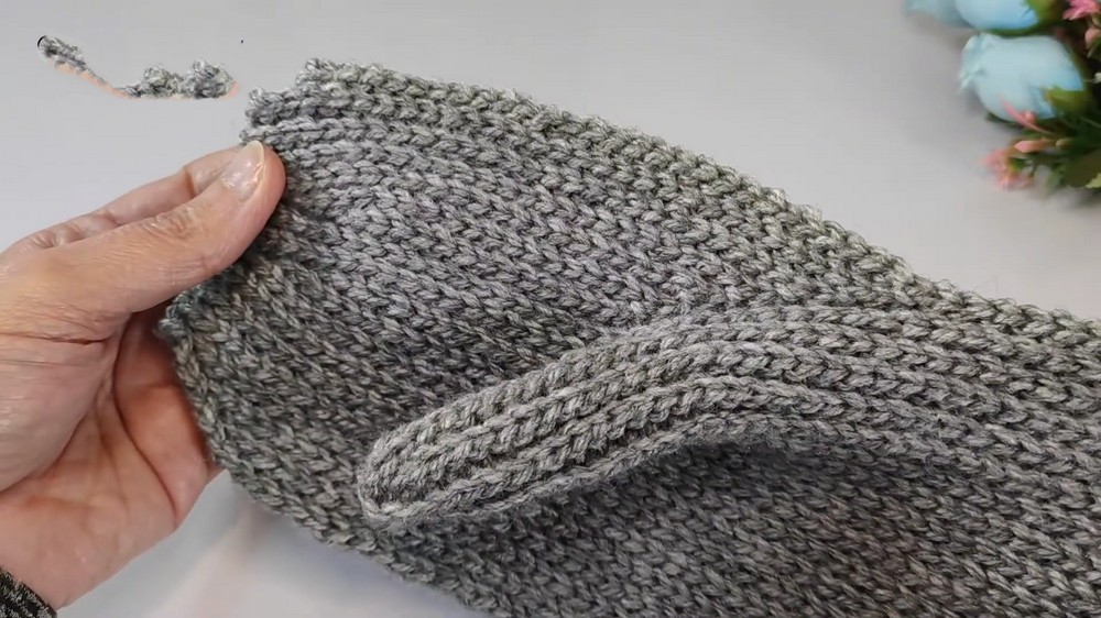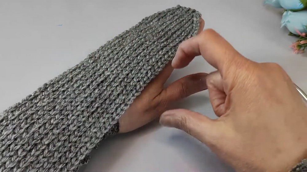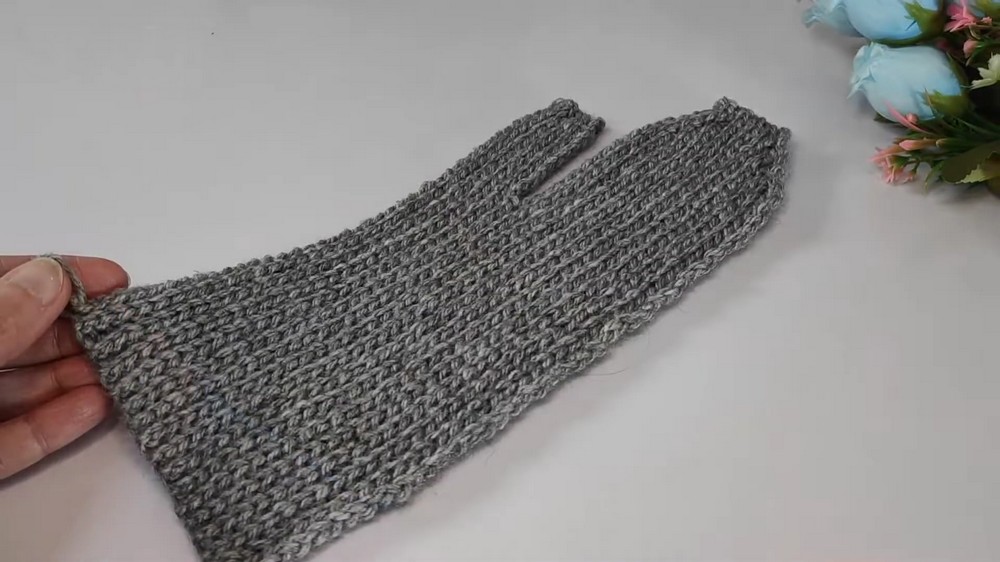 - Once the thumb area is completed, end the final row with a consistent slip stitch count and prepare to finish the piece.
