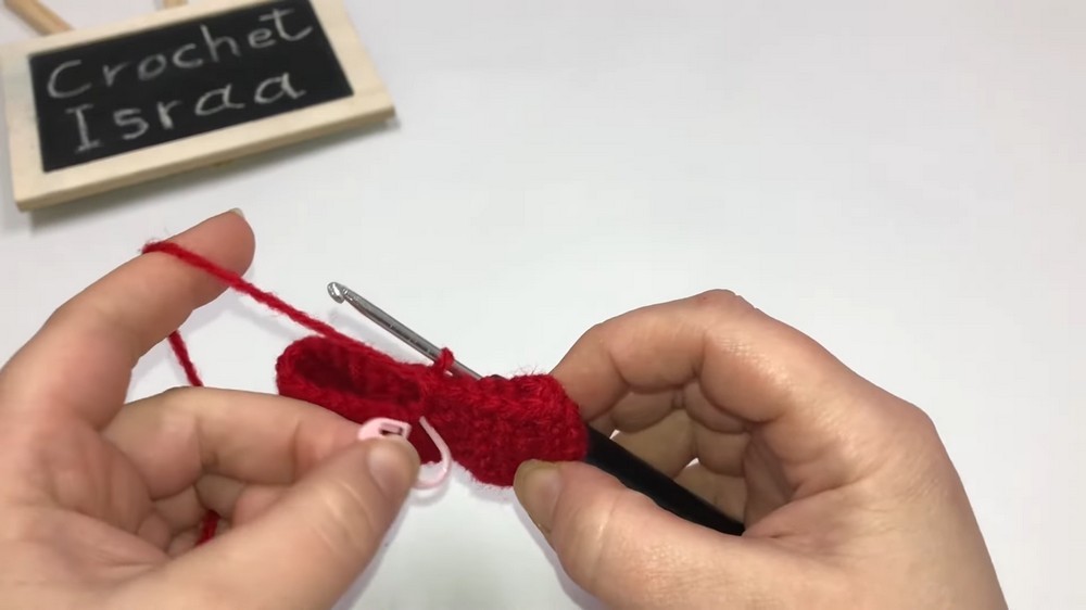 - Work 1 SC into the first 2 stitches.