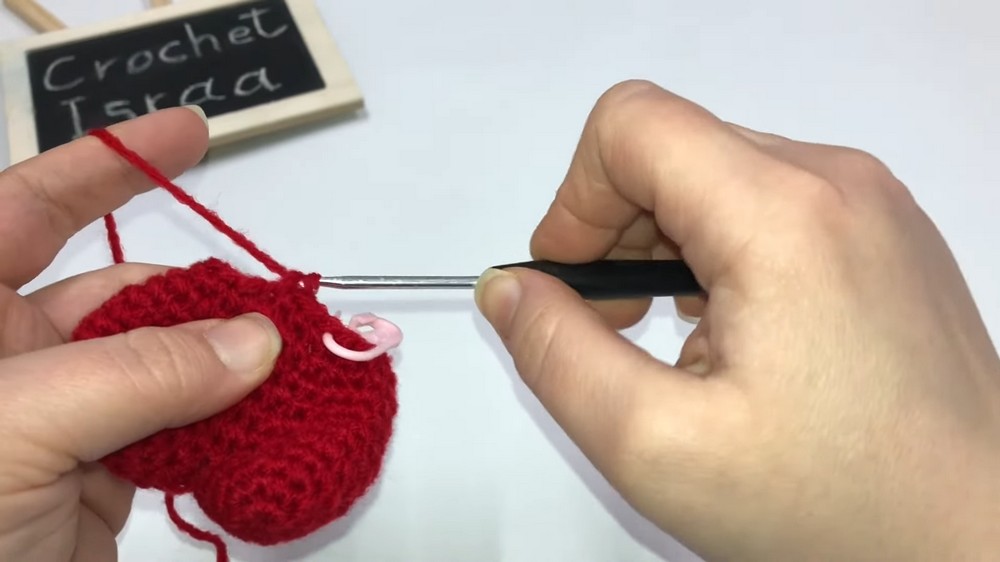 - Work 1 SC in each stitch around the heart. Keep stitch counts aligned to ensure the heart forms properly.