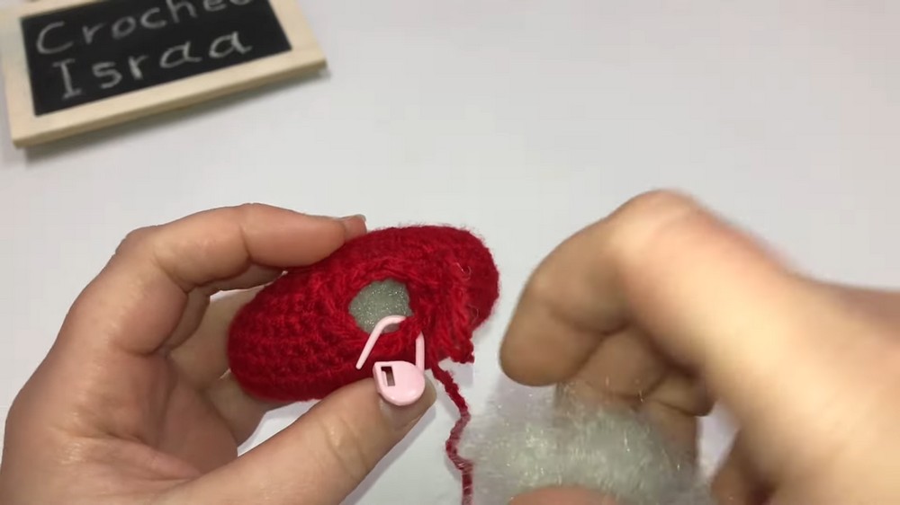 - Before the opening becomes too small, gently insert poly-fil stuffing inside the heart until it is firm but not overstuffed.