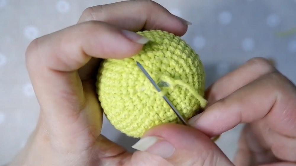 - Embroider or sew eyes and mouth using yarn or embroidery thread.