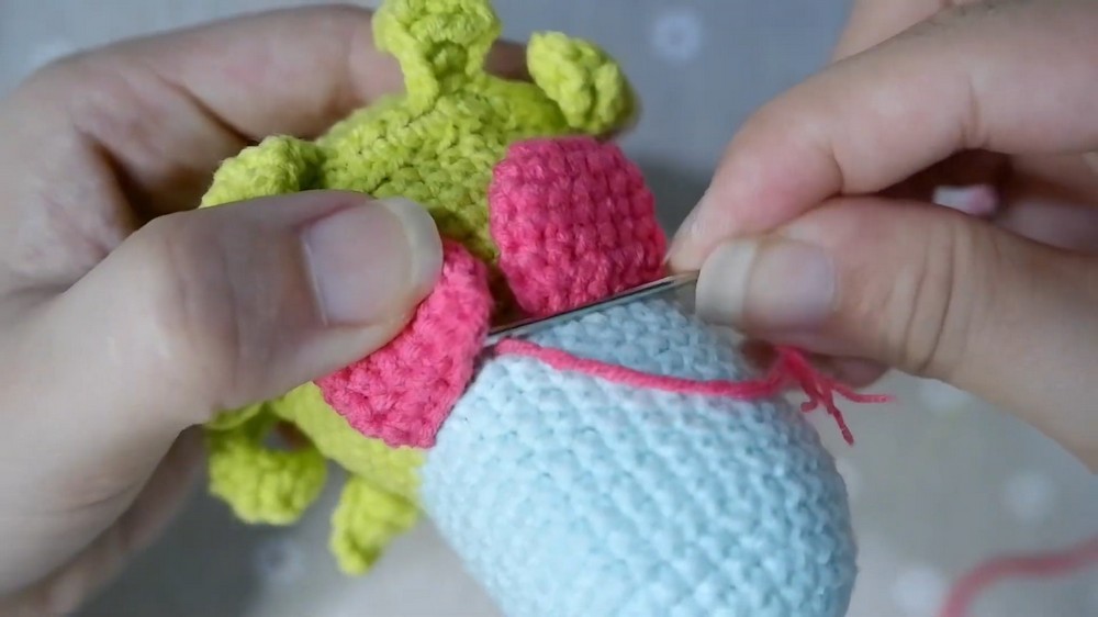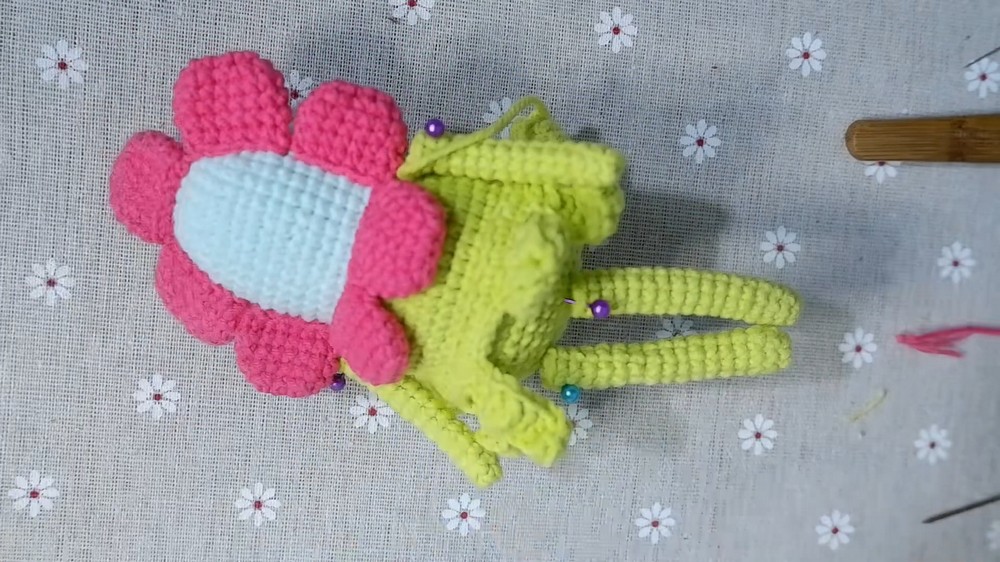 Before sewing the petals on, lay them out around the body to experiment with spacing and placement. Use pins or stitch markers to fix placement before sewing. This ensures even and aesthetically pleasing wings.